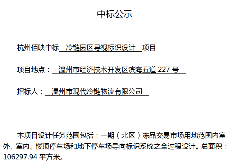 中標(biāo)公示:佰映中標(biāo)冷鏈園區(qū)導(dǎo)視標(biāo)識(shí)設(shè)計(jì)項(xiàng)目